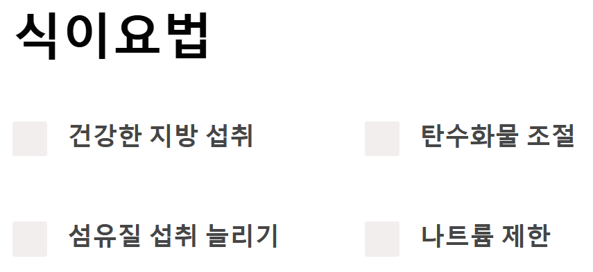 - 정제 탄수화물(흰 쌀밥, 빵, 설탕)은 줄이고, 통곡물과 복합 탄수화물을 선택하세요.