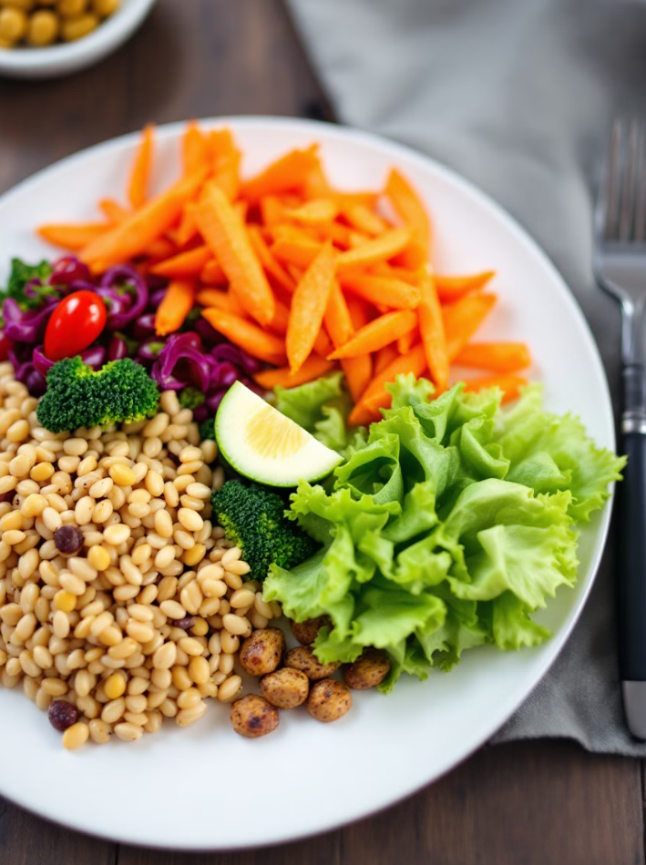- 채소, 과일, 콩류는 콜레스테롤 수치를 낮추고, 포만감을 유지하여 체중 감량에 도움을 줍니다.